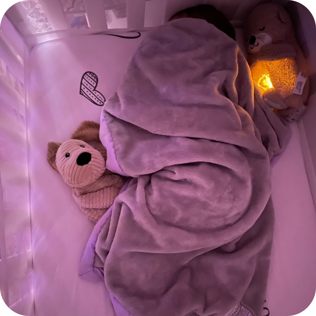 Its soothing breathing motion helps calm the mind and body, promoting deeper and more restful sleep for both kids and adults.